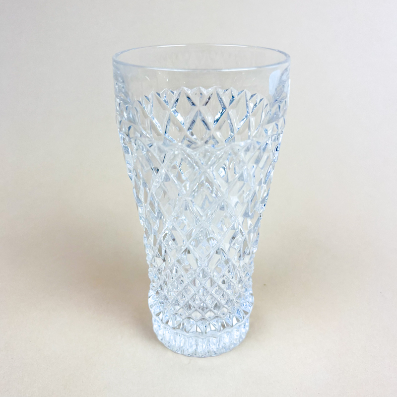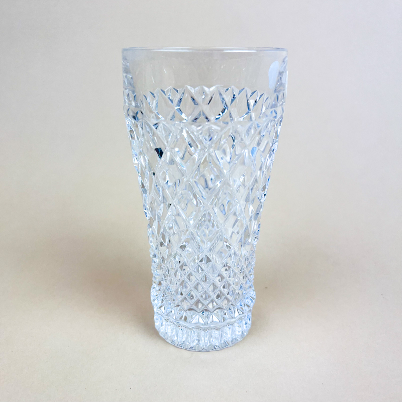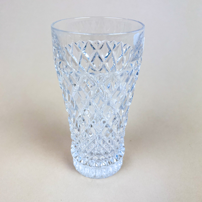 Flot vintage drikkeglas i kraftigt støbt glas med smukt facetslebet diamantmønster.