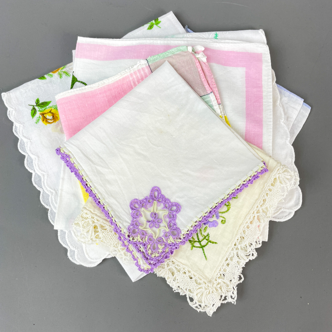 Flot samling af otte gamle lommetørklæder i bomuld.