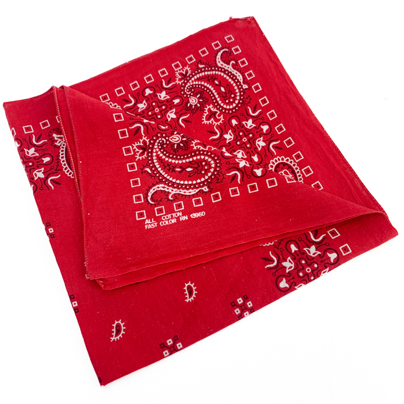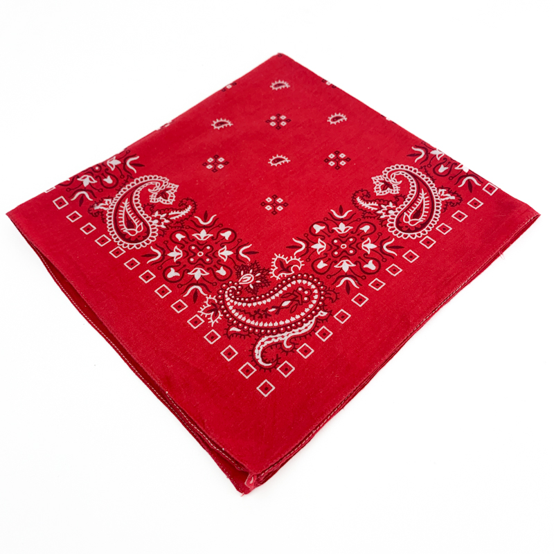 Klassisk vintage tørklæde i rød bomuld med traditionelt paisley-mønster i hvid.