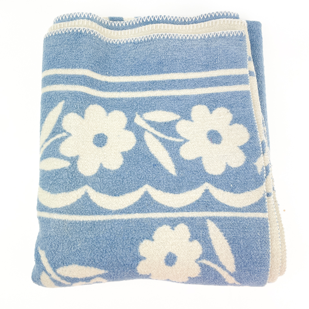 Smuk svensk vintage plaid vævet i stampet uld med stort blomstermønster.