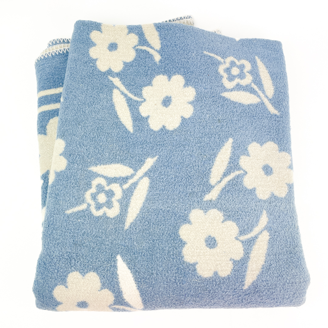 Plaiden måler ca. 180 x 140 cm og har dekorativ overkastet kant hele vejen rundt.