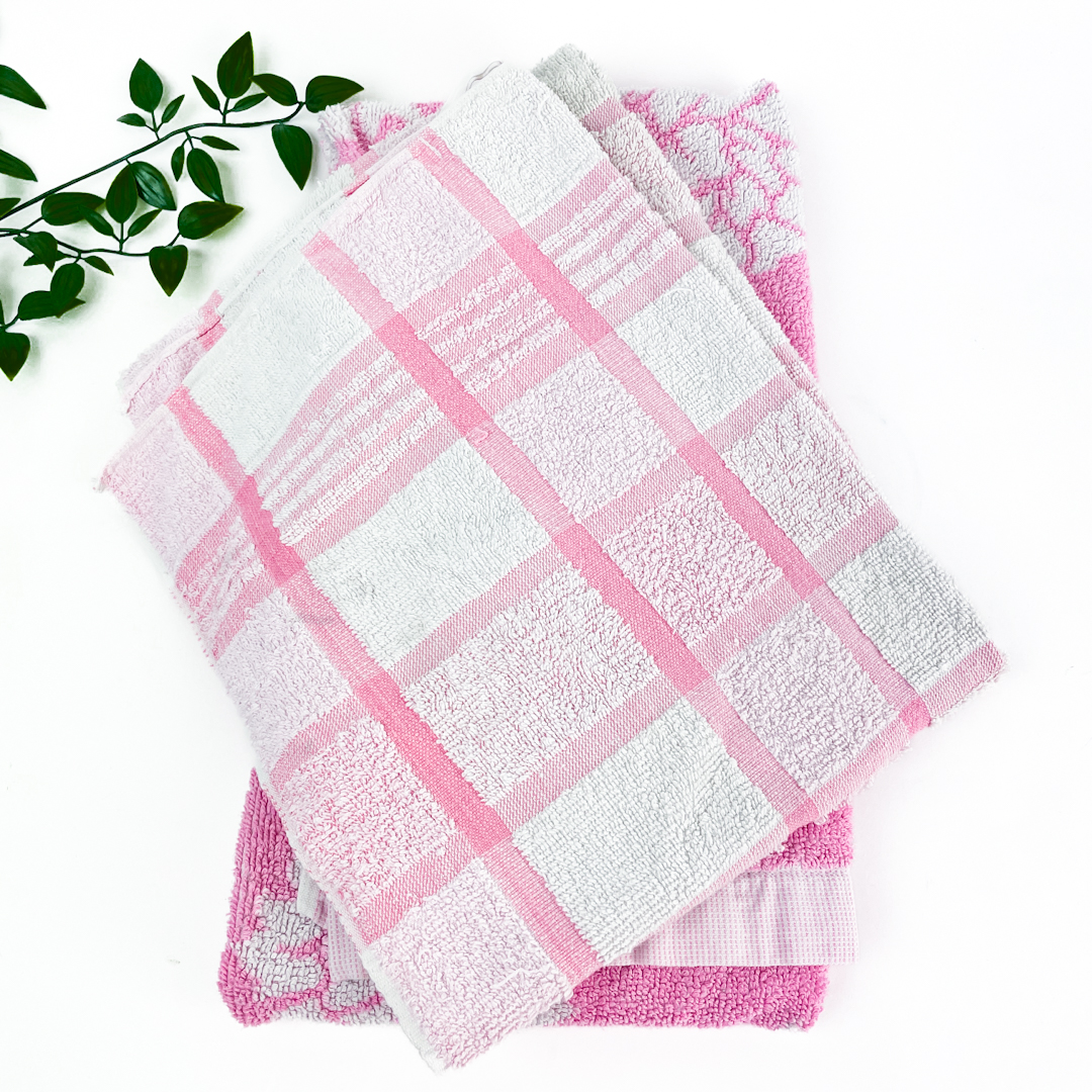Begge i lyserøde og hvide nuancer, vævet i kraftig frotté med fine detaljer.