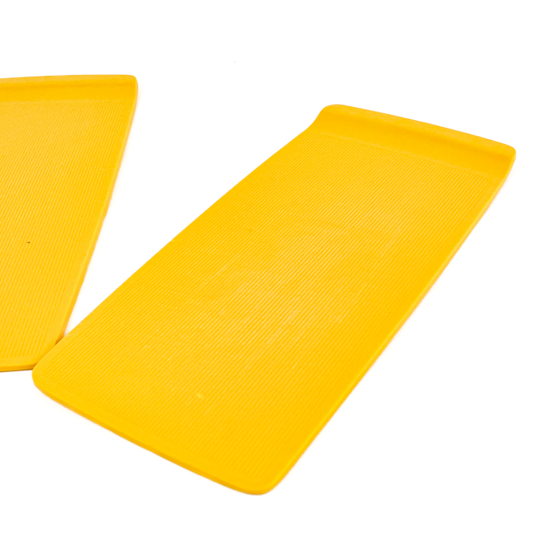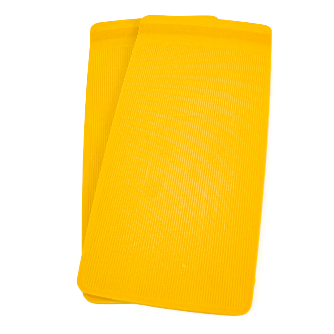 Smukke gule retro smørebrikker i fleksibelt gummimateriale med rillet overflade.