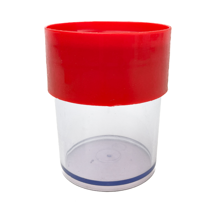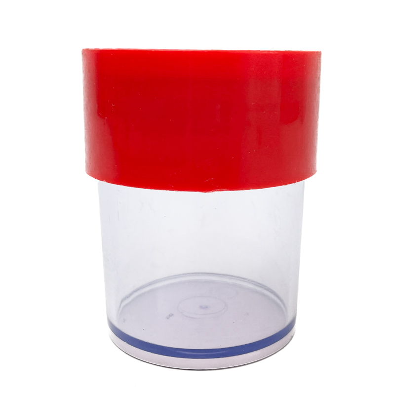 Vintage bøtte fra Erik Kold med klar bund og rød top i enkelt og funktionelt 1970’er-design.