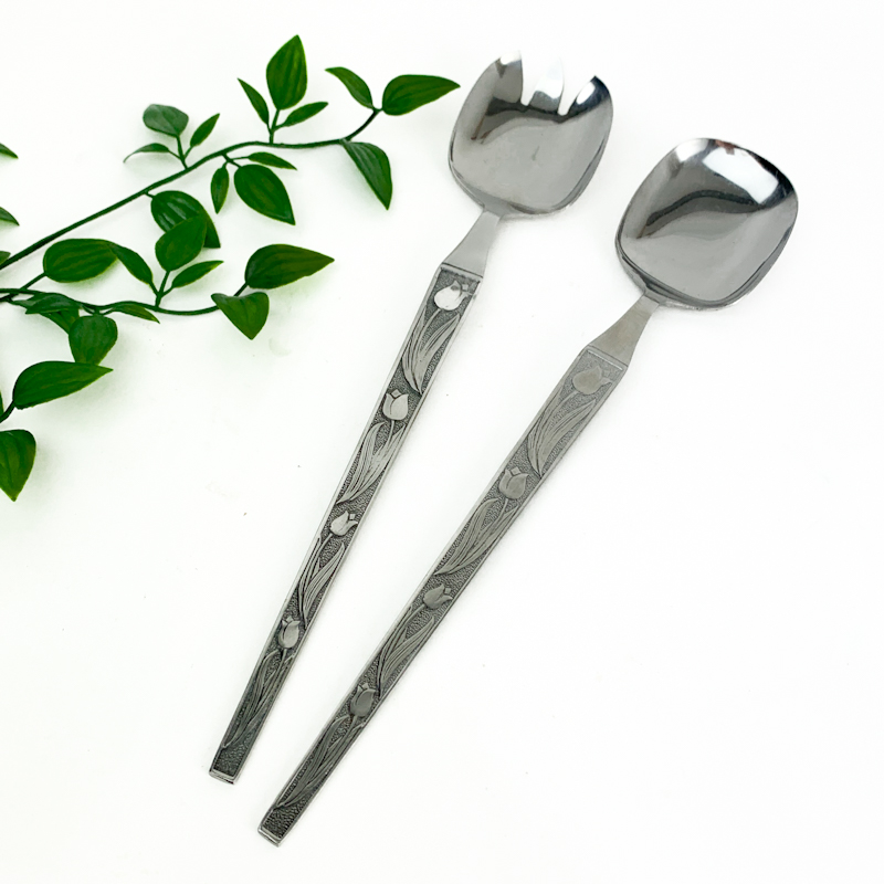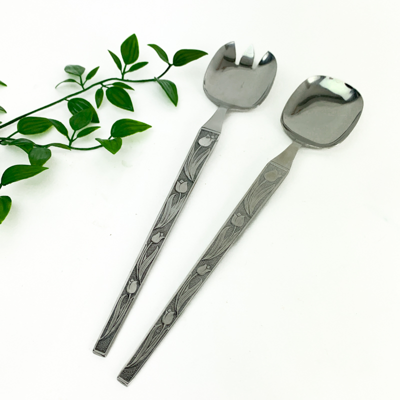 Retro salatbestik i sæt med to dele, udført i rustfri stål.