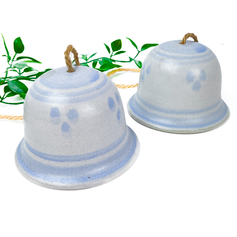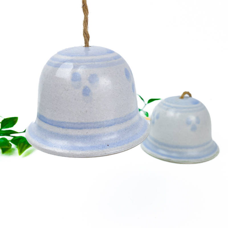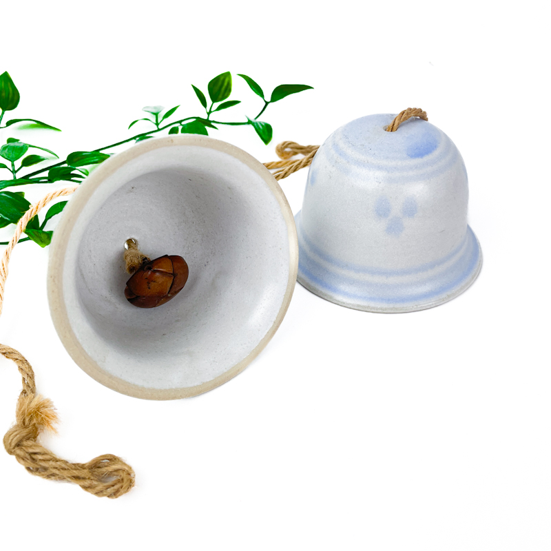Klokkerne er udført i glaseret keramik og har ophæng i naturfarvet snor samt indvendig klang med sten, som giver et roligt og afdæmpet udtryk.