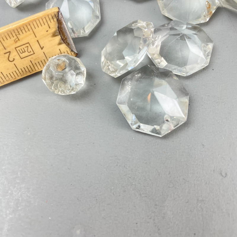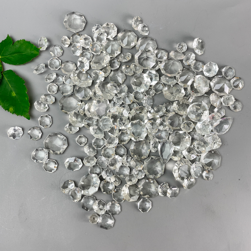 Prismerne er fremstillet i klart glas og egner sig til restaurering eller supplering af lysekroner og lamper.