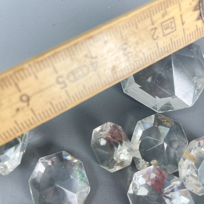 Større assorteret sæt klare vintage prismer i facetslebet glas.