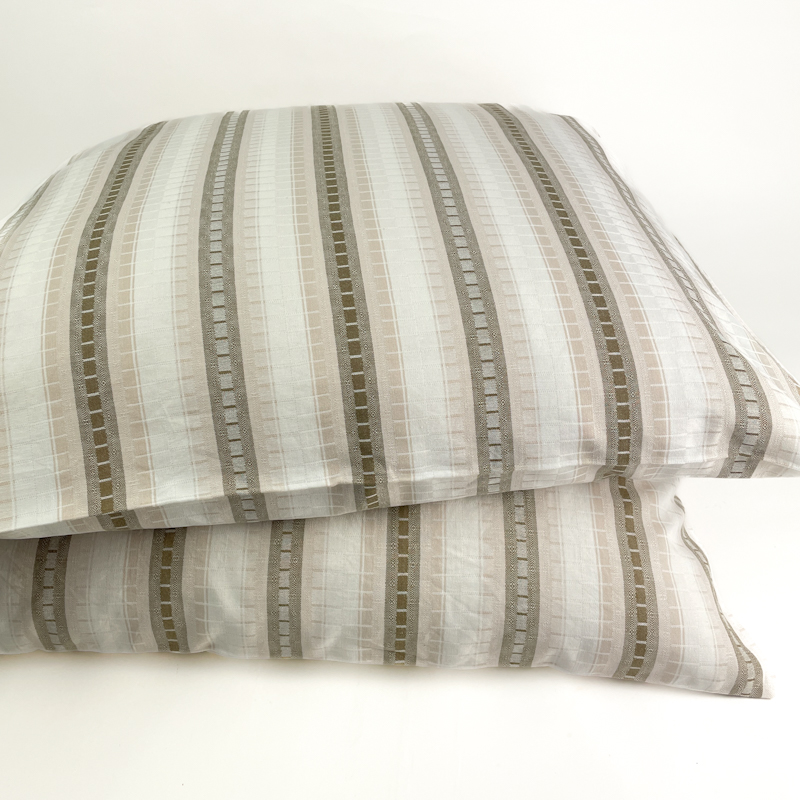 Pudebetrækkene er fremstillet i damaskvævet bomuld med tydelig struktur og roligt mønster.