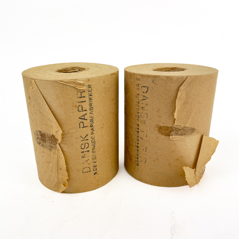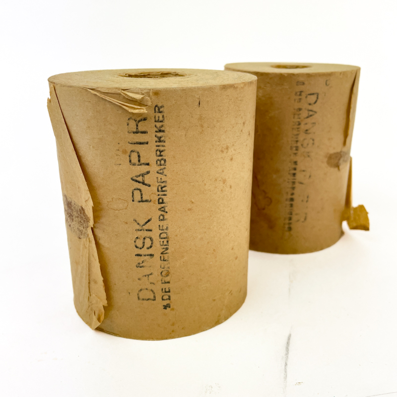 To originale vintage toiletruller i kraftigt papir med tryk fra Dansk Papir.