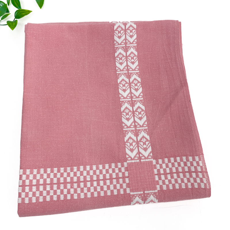 Smuk retro dug i rosa bomuld med vævet mønster i hvid, placeret som bort og midterfelt.