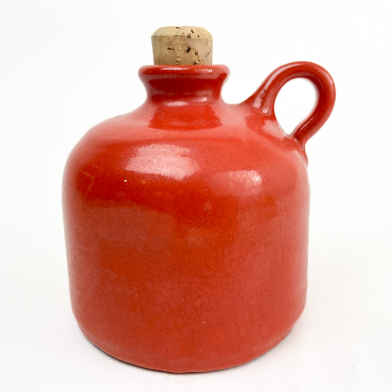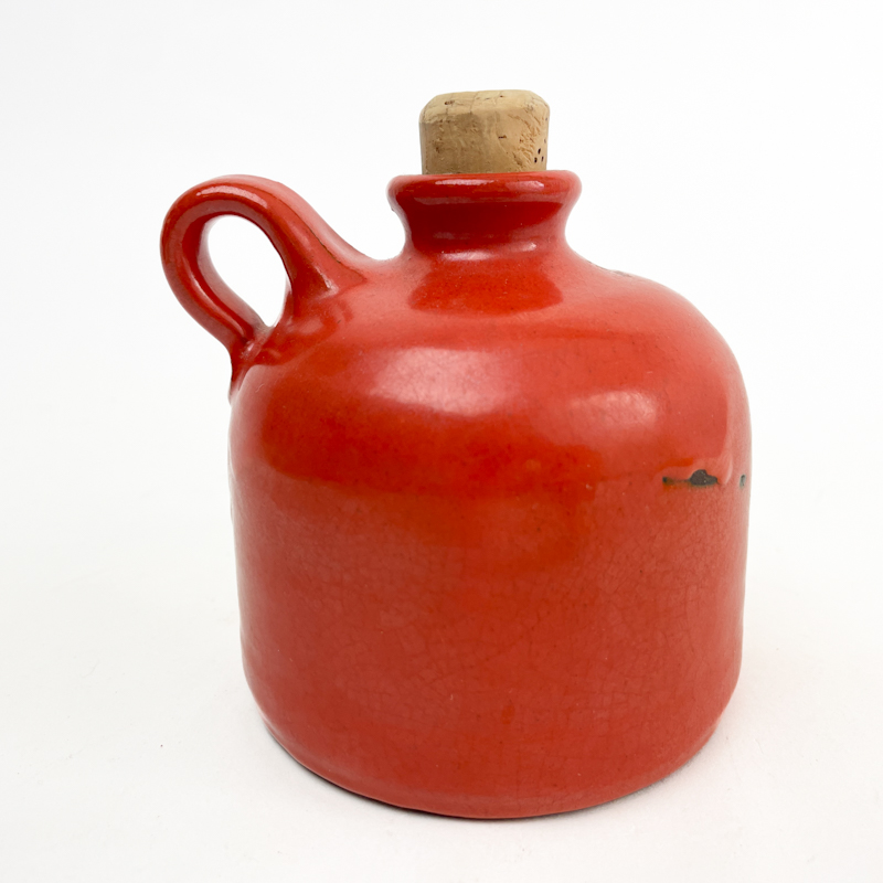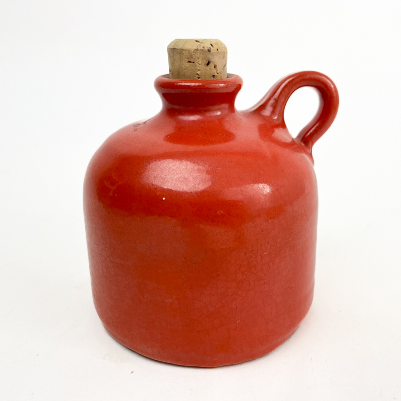Orange vintage flaske i glaseret stentøj med original korkprop.