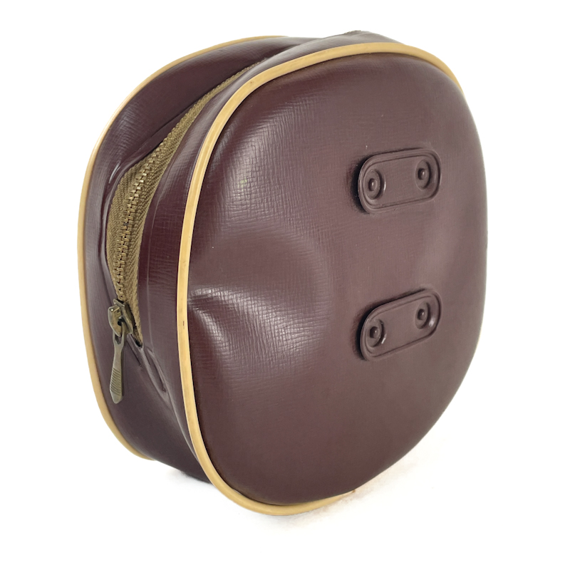 Vintage kamera-flash med rund reflektor og tilhørende original Precisa taske, Made in Germany.