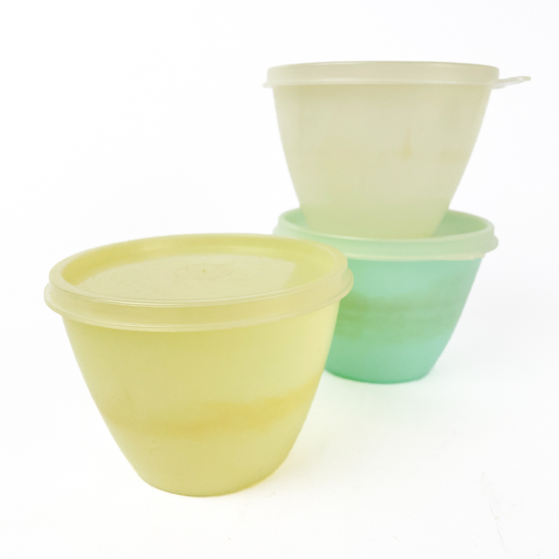 Originale Tupperware bøtter i fine pastelfarver.