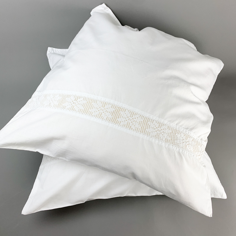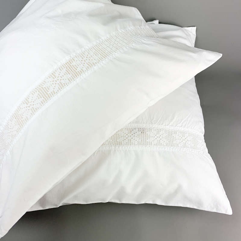 Vintage pudebetræk i hvid med gennemgående mellemværk.