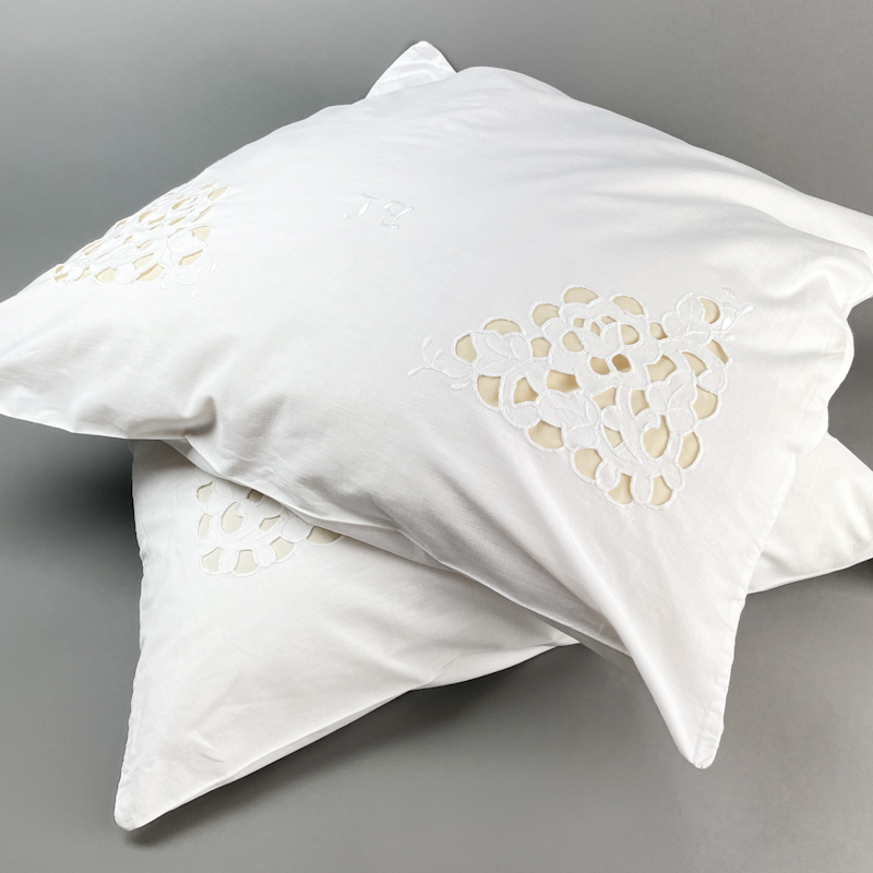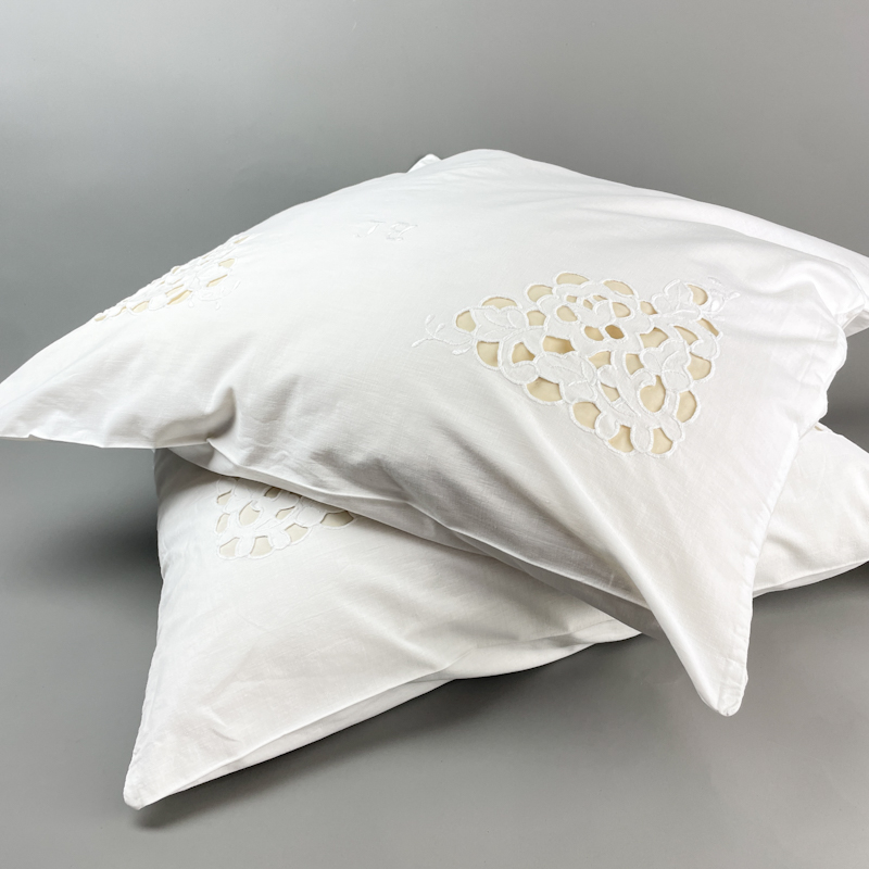 Hvide vintage pudebetræk i ren bomuld med smukt gammelt håndarbejde og broderi.