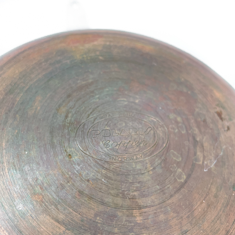 Klassisk vintage kasserolle i kobber med stålgreb og stempel Polar Copper, Norway.