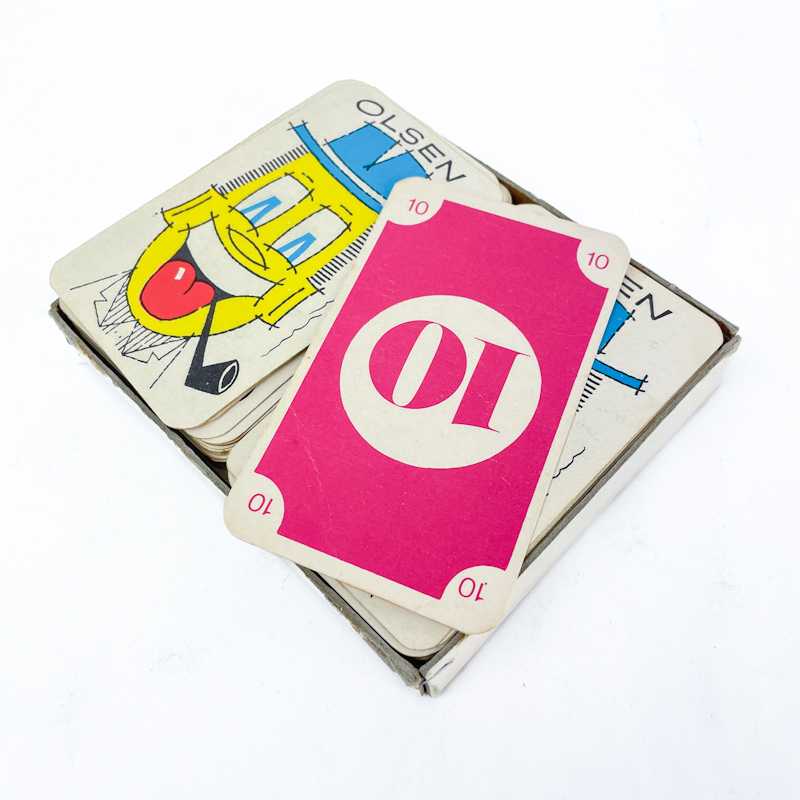 Ældre dansk kortspil med titlen Olsen, udgivet som paletspil i original æske.