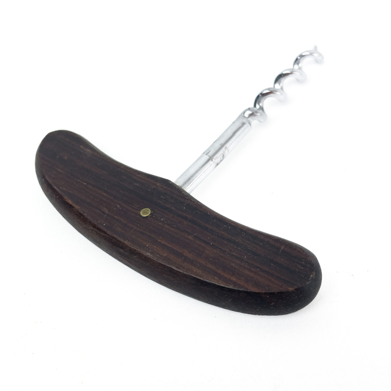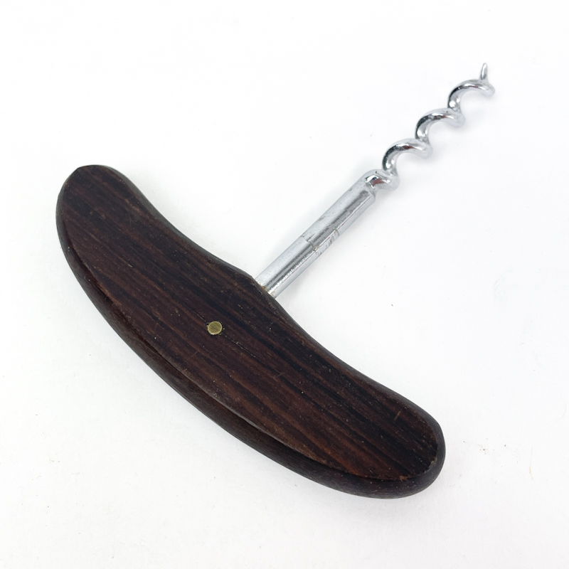 Klassisk vintage proptrækker med håndtag i massivt teaktræ og spiral i metal.