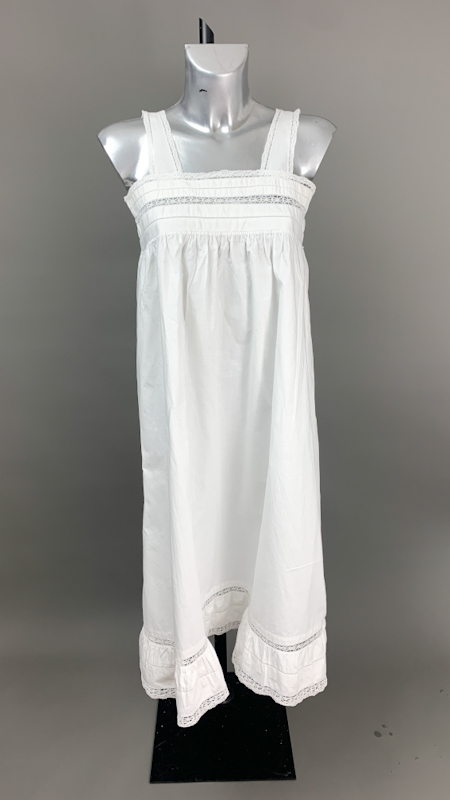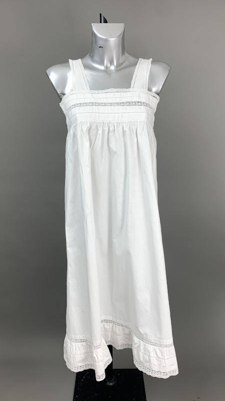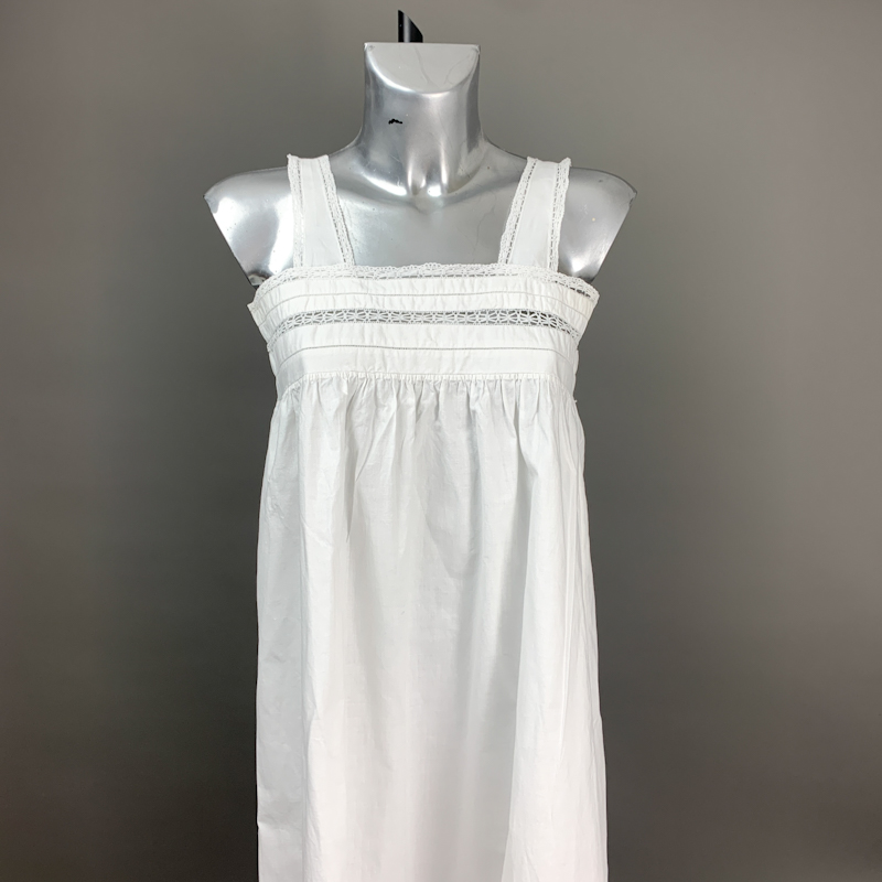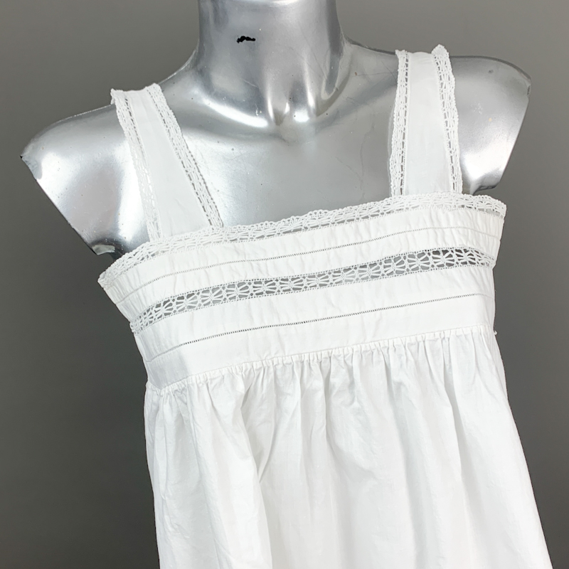 Vintage natkjole i klassisk hvid med fine blondebånd på stropper og bærestykke