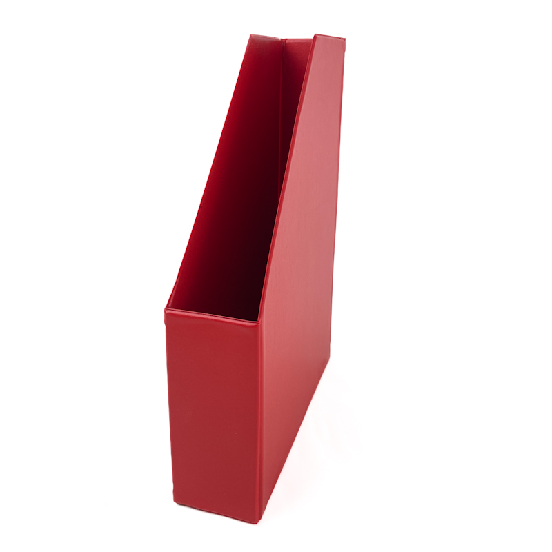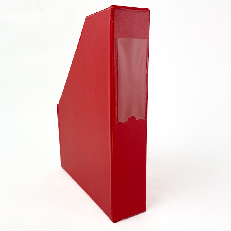 Rød Retro tidsskriftskassette i enkelt og stramt formsprog.
