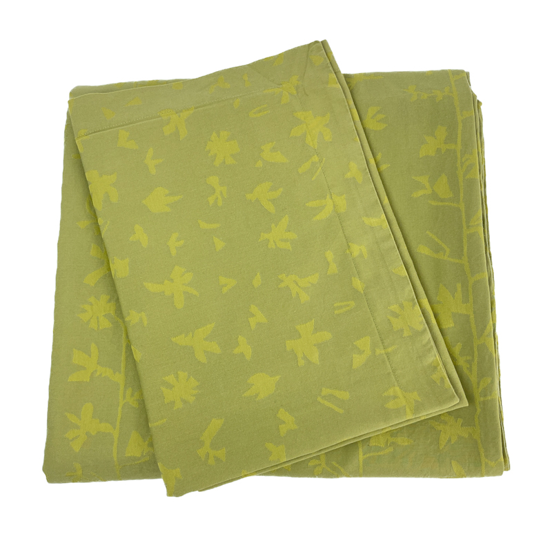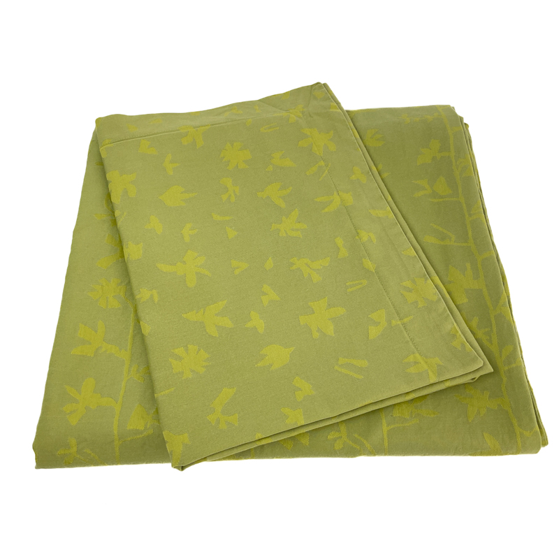 Smukt vintage sengetøj fra Georg Jensen Damask i en klar grøn nuance med diskret, grafisk mønster.