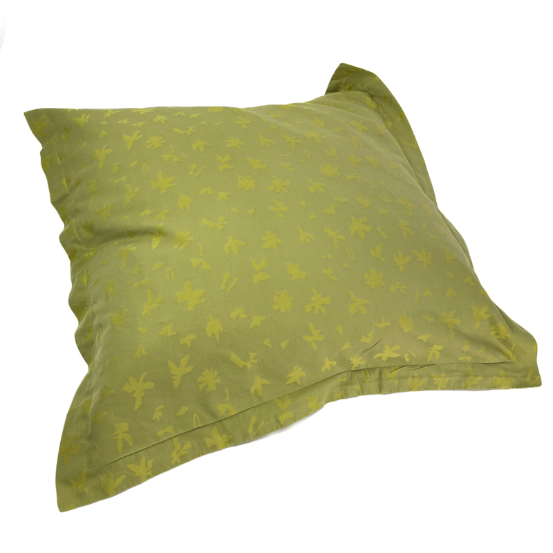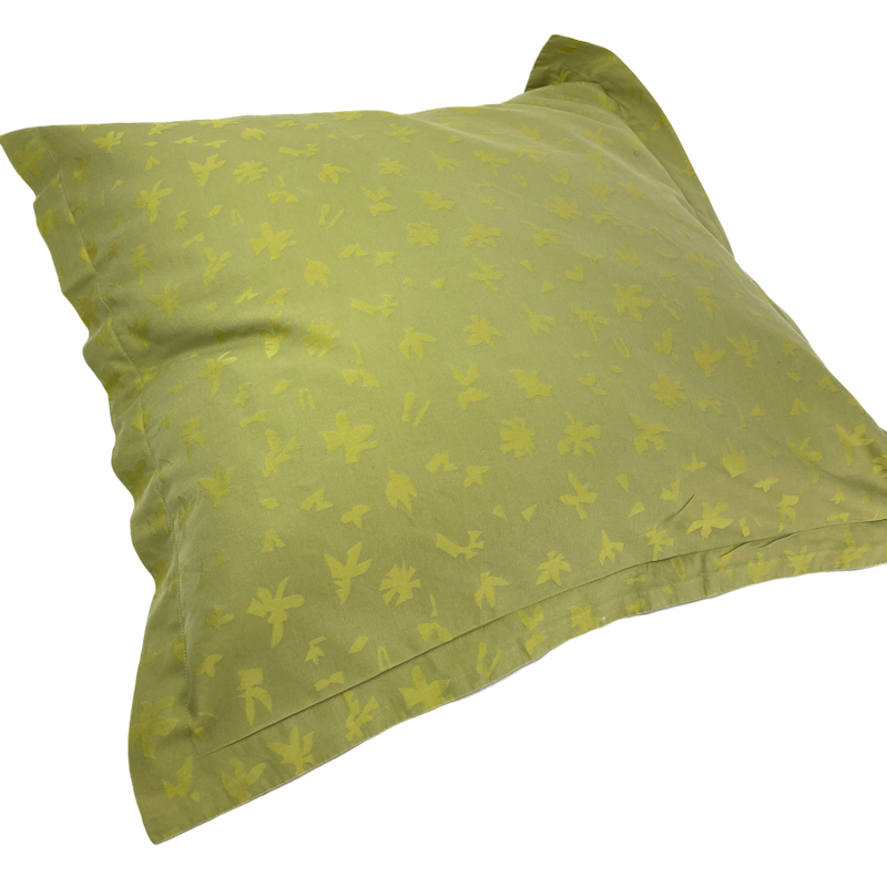 Originalt vintage pudebetræk fra Georg Jensen Damask i en klar grøn nuance med fint, grafisk bladmønster.