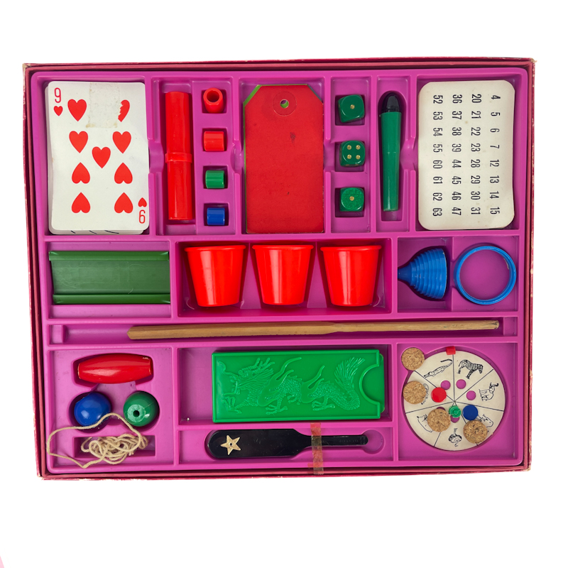 Sættet indeholder materialer til i alt 57 tricks, og der er indhold til at udføre dem alle.