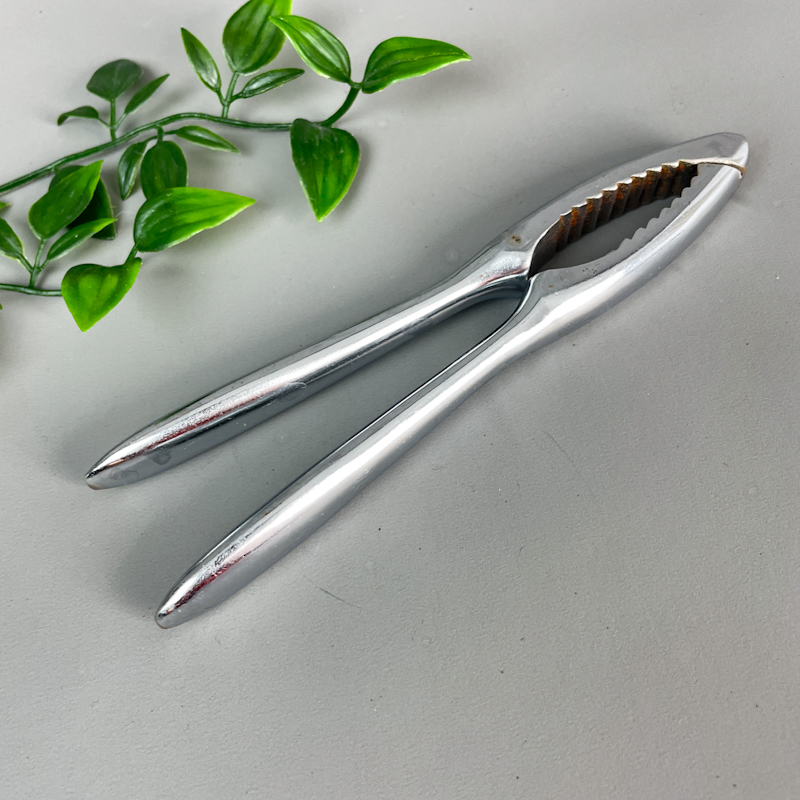 Klassisk vintage nøddeknækker i sølvplet med slankt, funktionelt design og riflet greb.