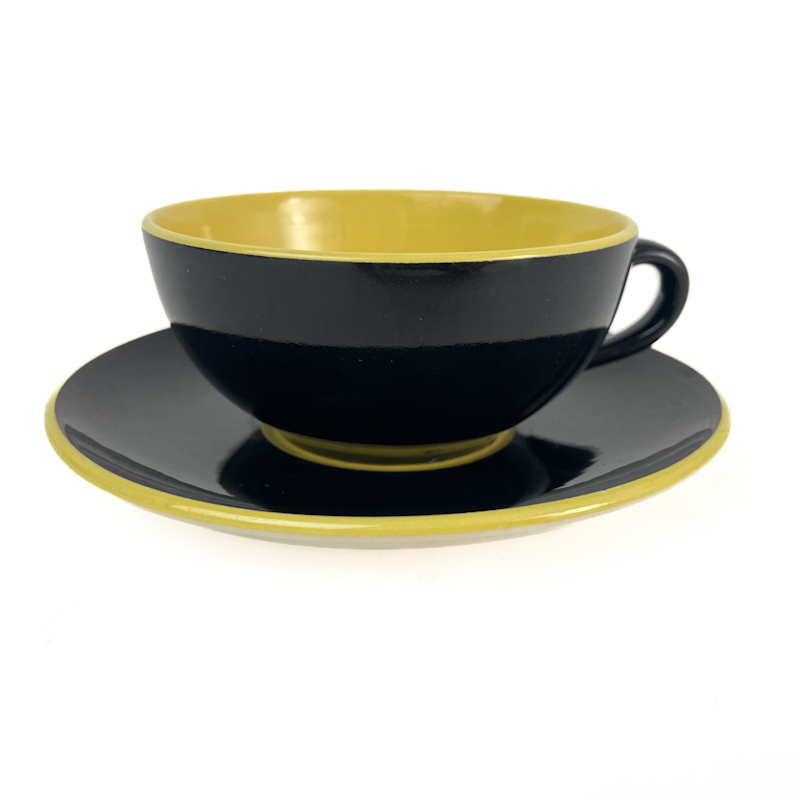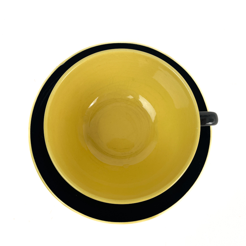 Markant sort og gul glasur med flot kontrast og klassisk formsprog fra perioden.