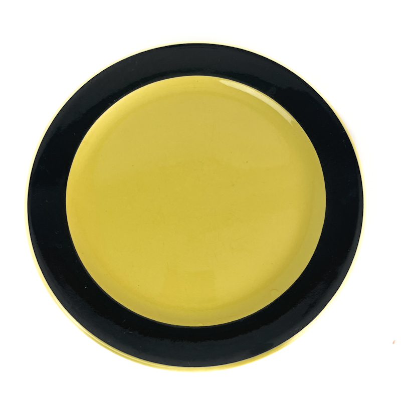 Markant sort og gul glasur med flot kontrast og klassisk formsprog fra perioden.