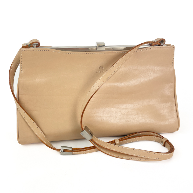 Vintage håndtaske i lyst kernelæder fra Adax med fast metalramme og kliklukning.