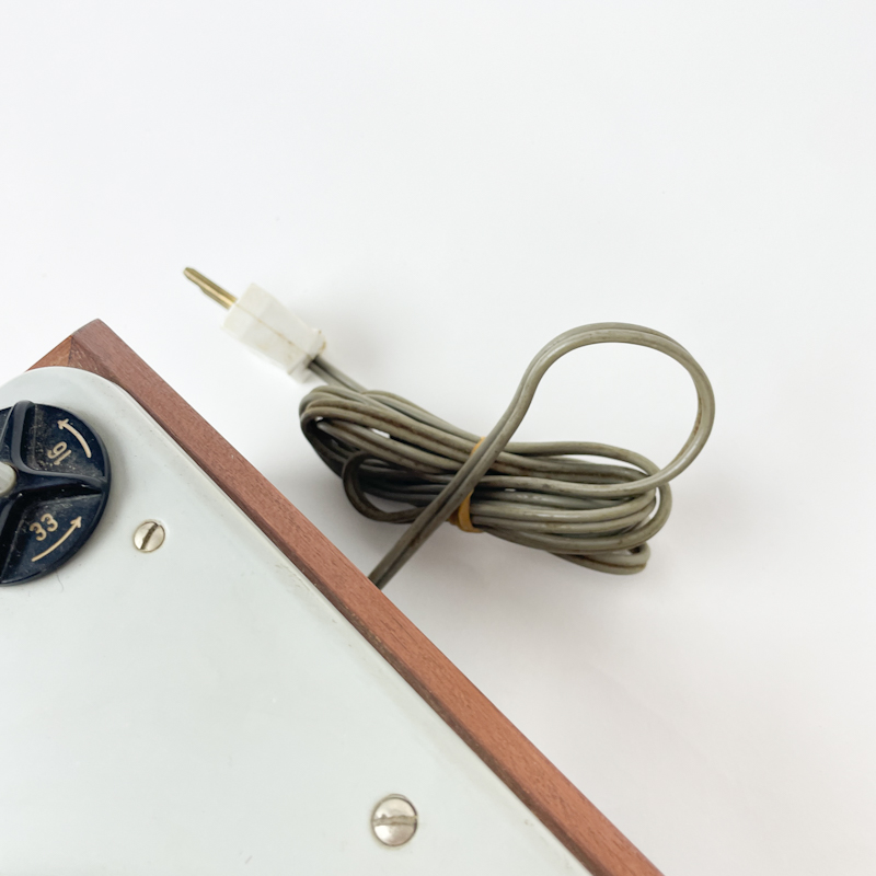 Kabinet i træ med lys topplade og original tonearm.