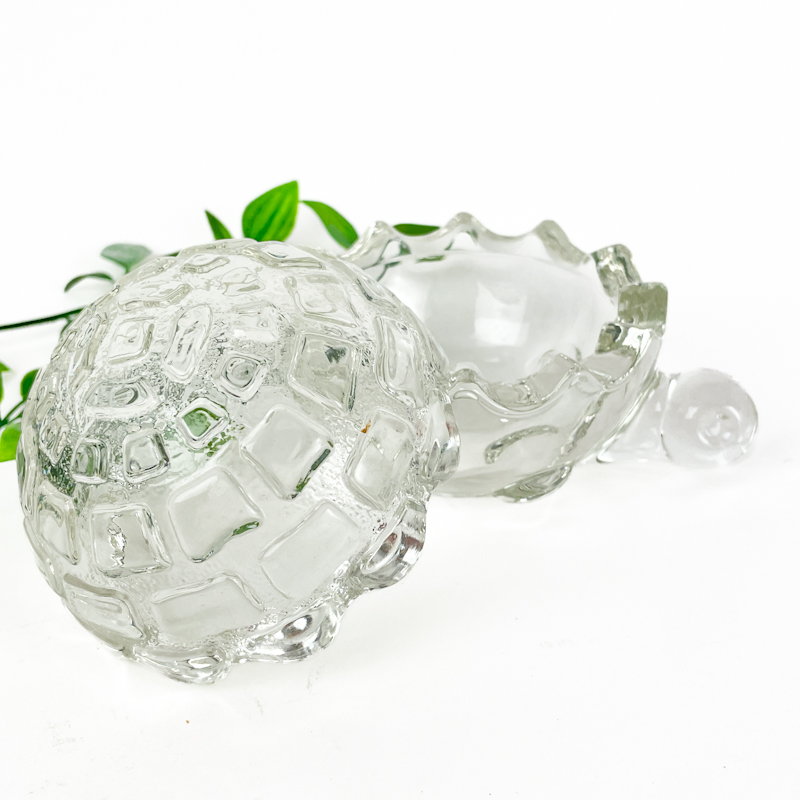 Fin vintage bonbonniere i støbt glas formet som en skildpadde med aftageligt låg.