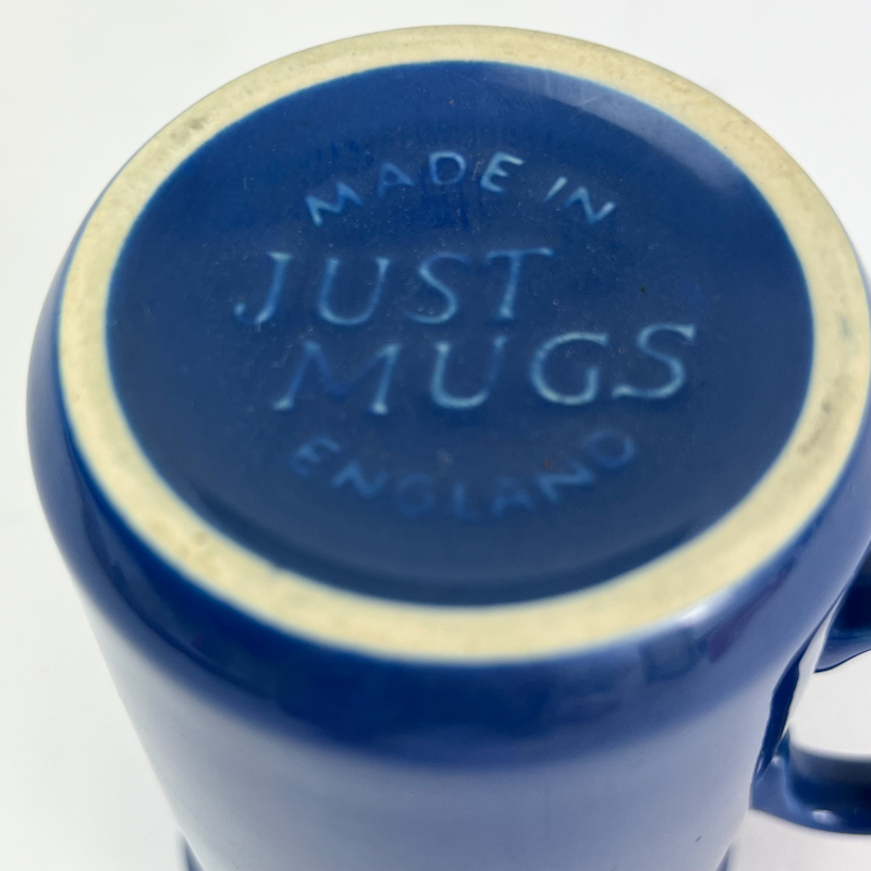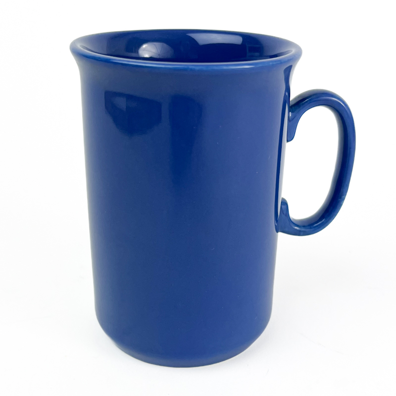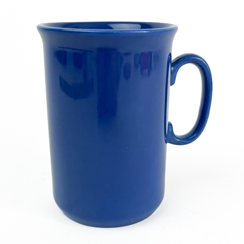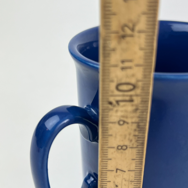 Smukt engelsk retro krus i dyb blå glasur med klassisk, enkel form.