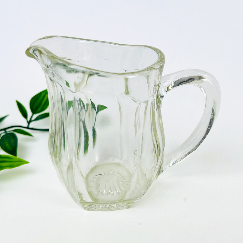 Klassisk vintage flødekande fra Fyns Glasværk i klart presset glas.