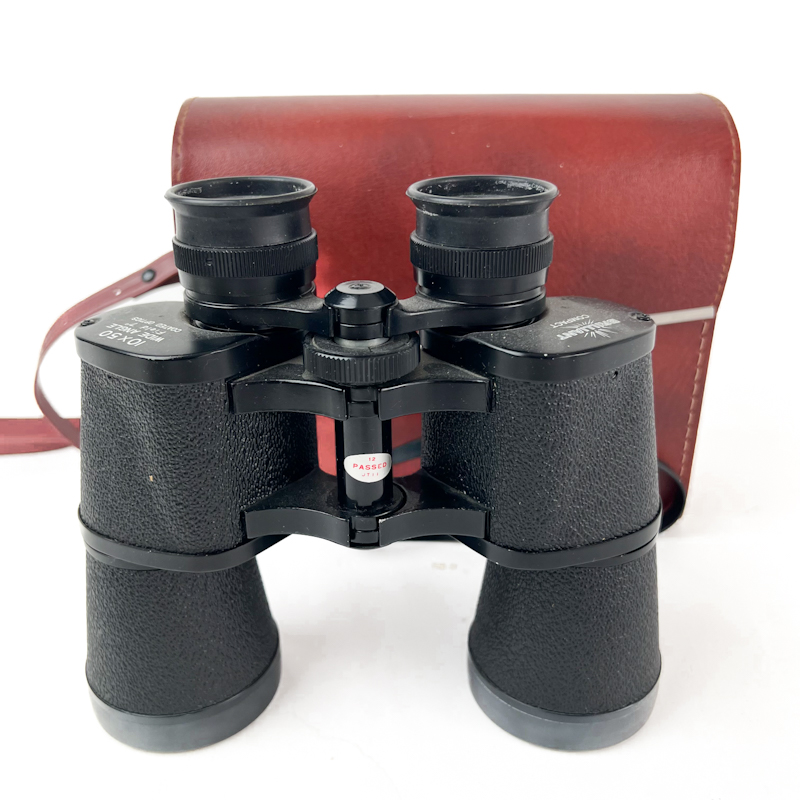 Klassisk retro kikkert 10x50 i sort metal med struktureret greb og justerbart fokus.