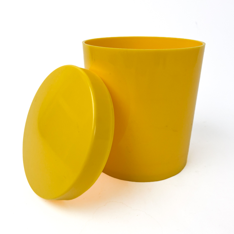 Skøn retro opbevaringsbøtte i klar gul farve med enkelt og klassisk formsprog.