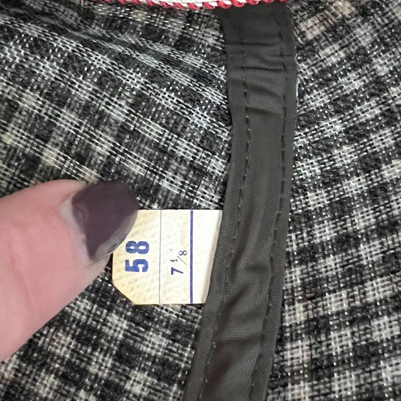 Hatten er fremstillet i kraftig uldblanding og dateres til ca. 1950’erne, hvor formen var skarp og materialerne holdbare.