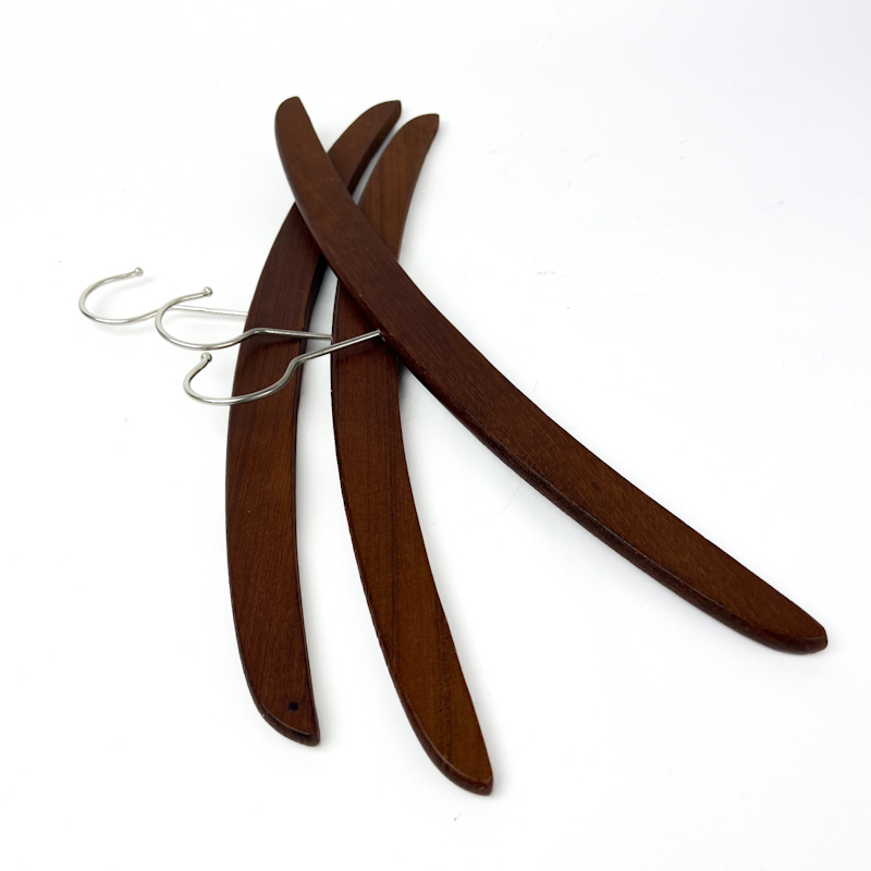 Tre elegante vintage bøjler i massivt palisander med klassisk, slank form.