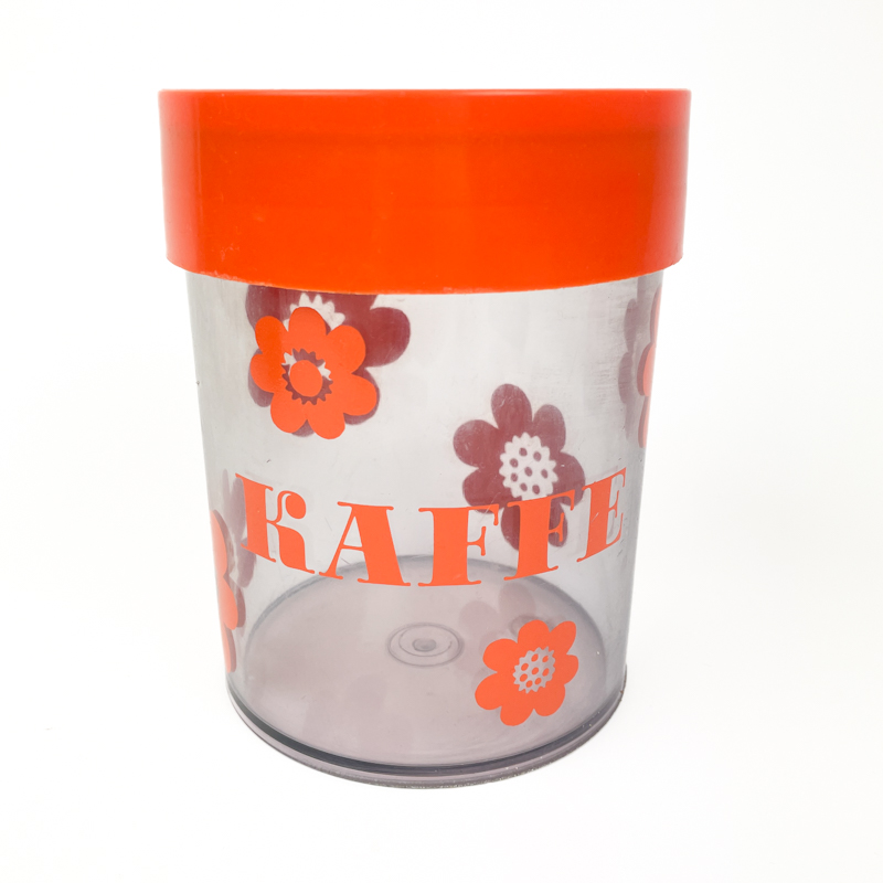 En klassisk Erik Kold dåse til kaffe fra perioden hvor plastdesign blev en fast del af køkkenet.
