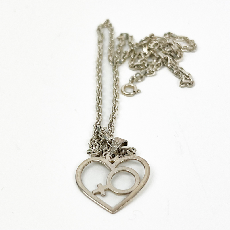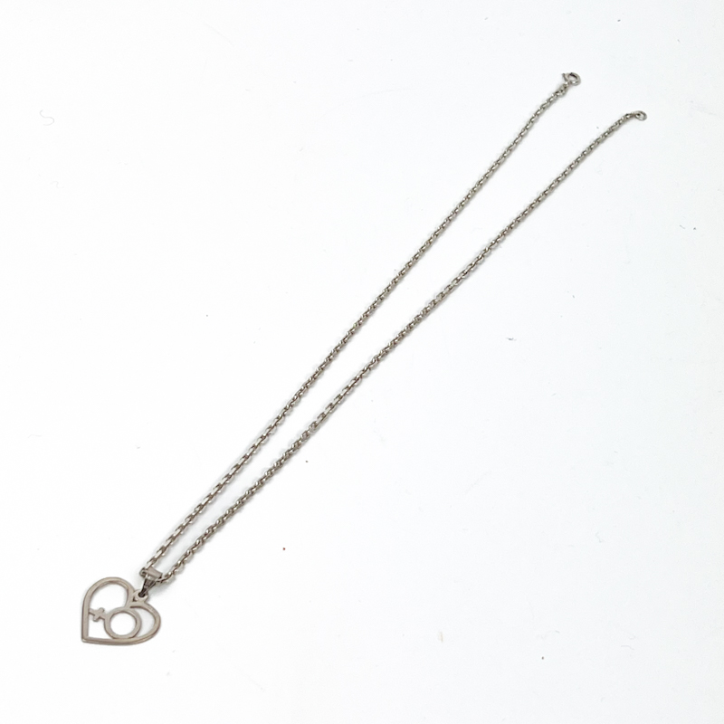 Fin vintage halskæde i sølv med hjertevedhæng og klassisk kvindesymbol.