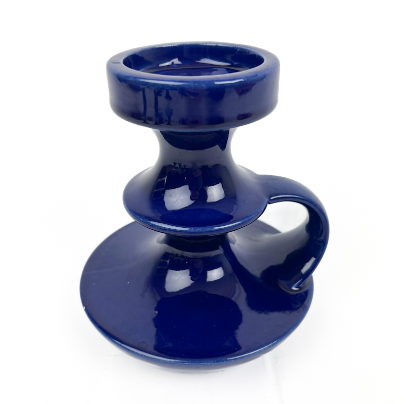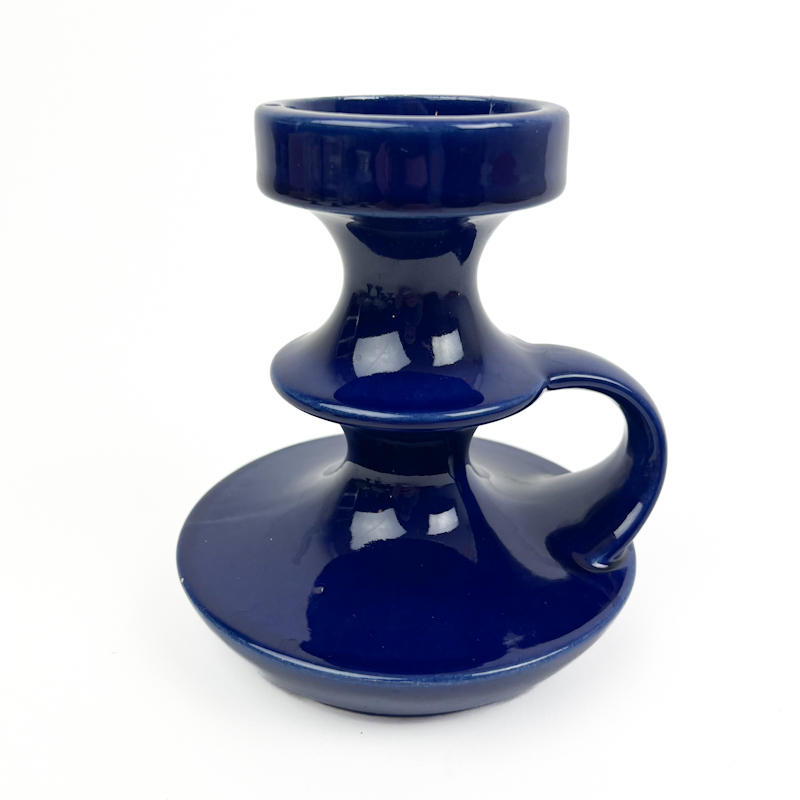 Flot retro lysestage i glaseret keramik fra West Germany med karakteristisk dyb koboltblå glasur.
