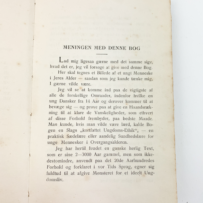 Indholdet er trykt på papir med tydelig ældre skrifttype og giver et godt indblik i tidens værdier og tanker om ungdom.