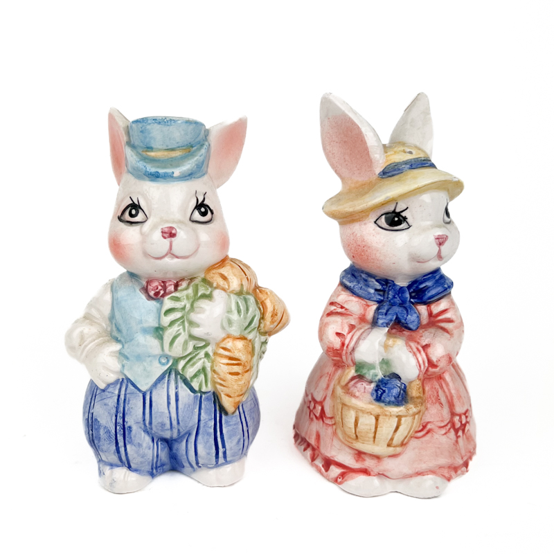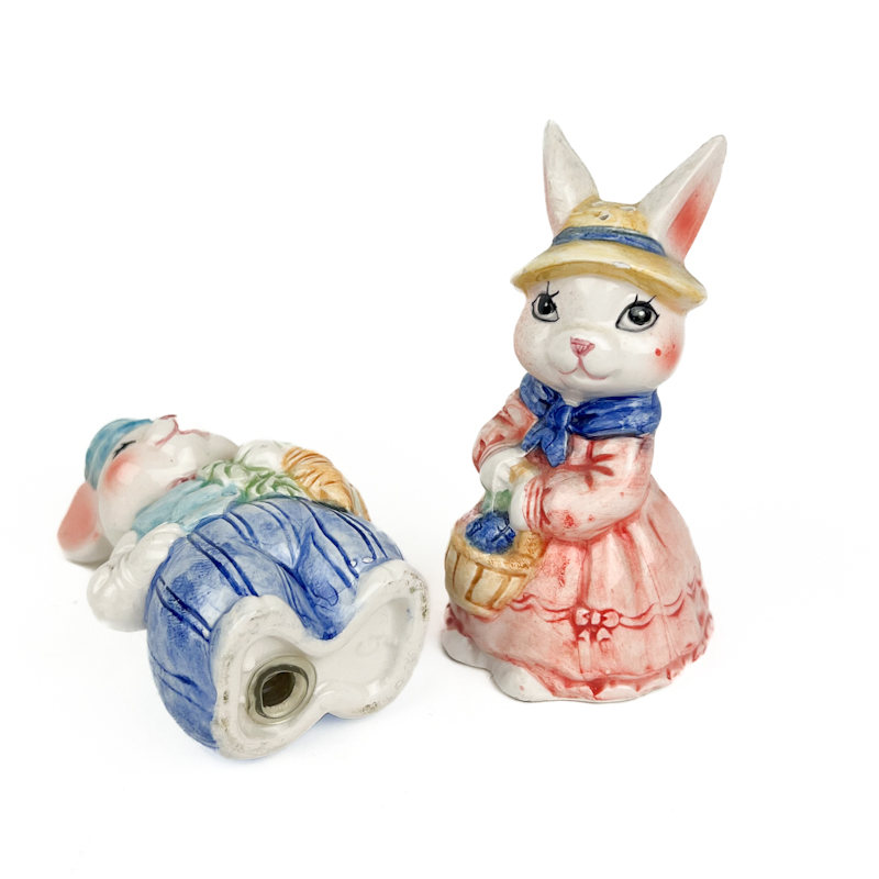 Sødt retro salt- og pebersæt formet som to kaniner med fine håndmalede detaljer.
