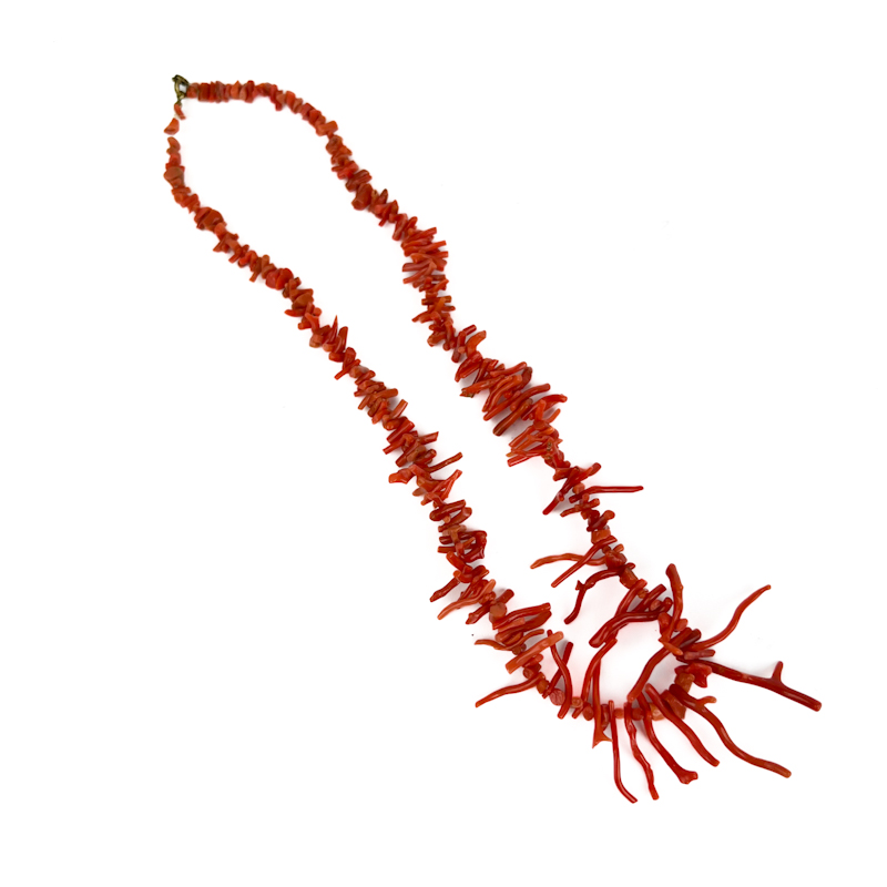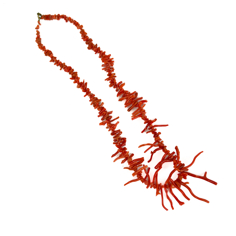 Markant vintage halskæde med rå, grenformede perler i rød koral.