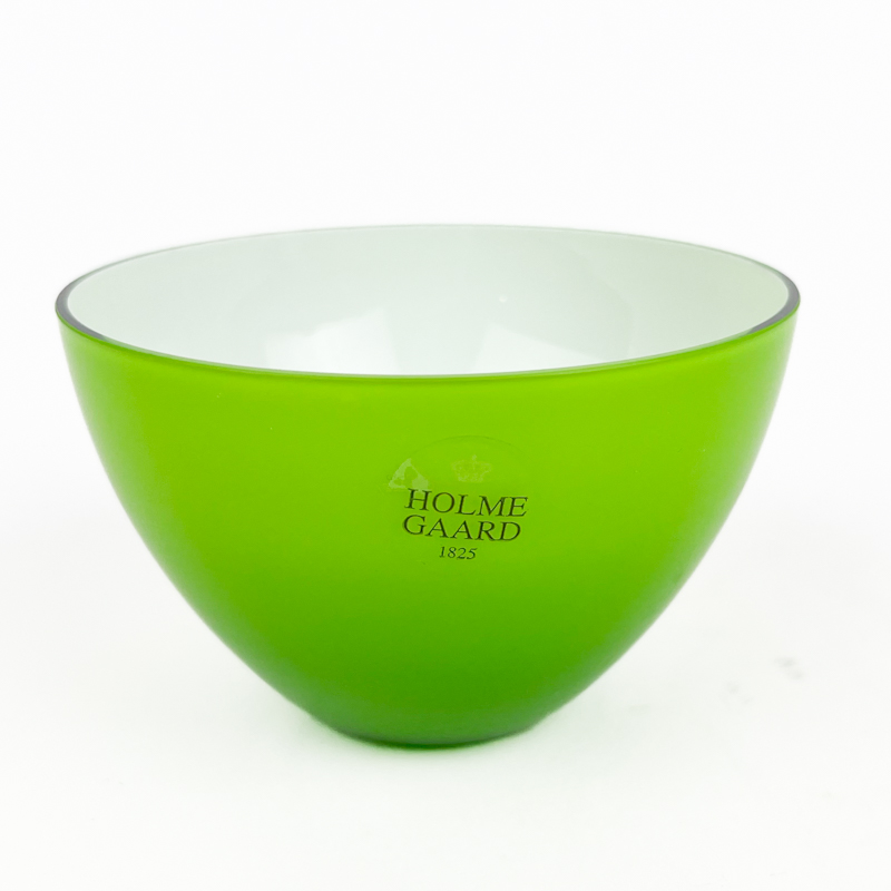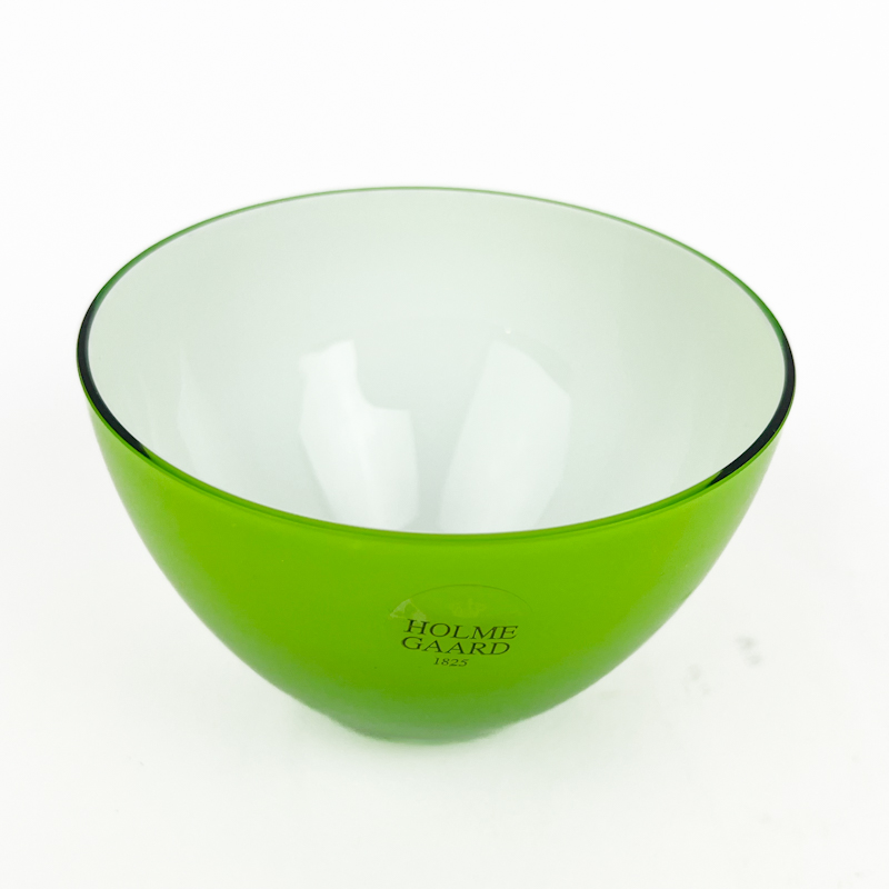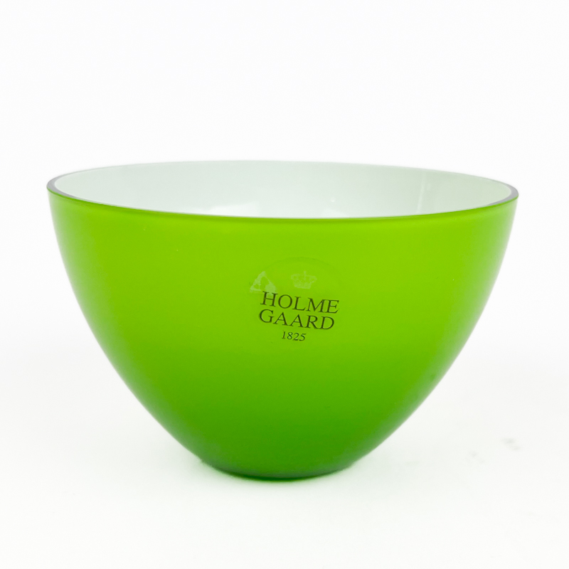 Flot grøn vintage skål fra Holmegaard med hvid inderside og klassisk rund form.