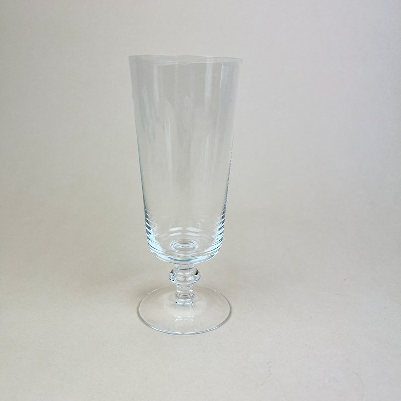 Glasset er udført i klart glas med klassisk stilk og fod, typisk for europæisk design fra midten af det 20. århundrede.