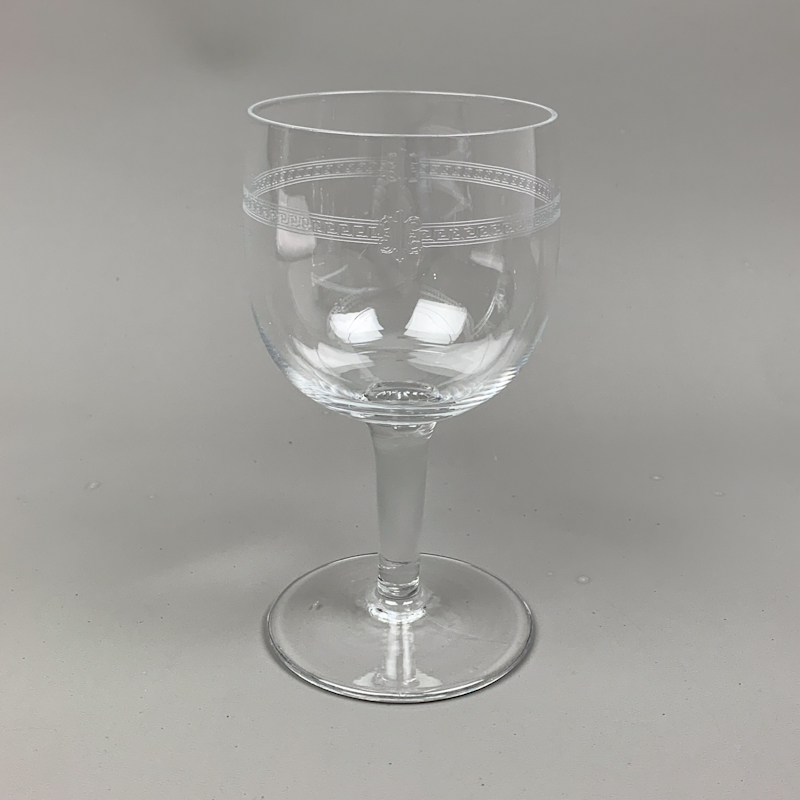 Elegant vintage hvidvinsglas i klart glas med fin ciselering langs kanten.