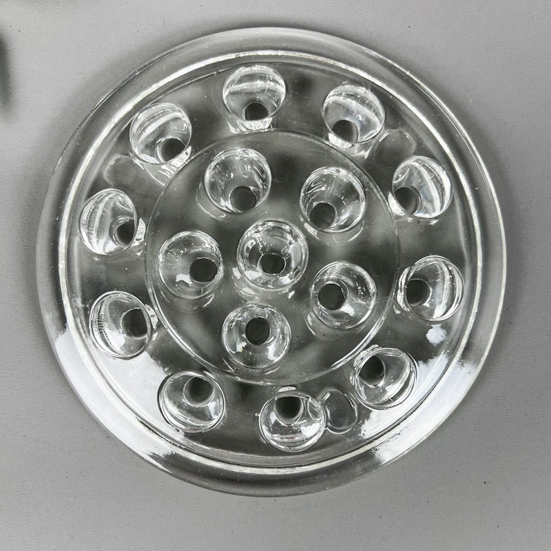 Klassisk vintage blomsterfakir i klart støbt glas med mange fine åbninger til stilke.